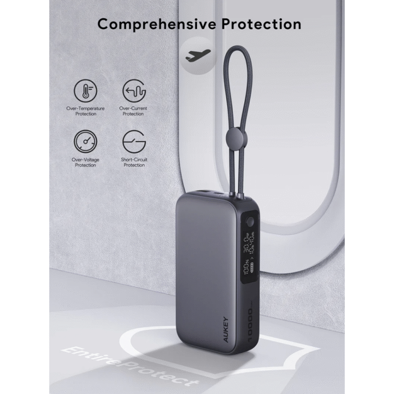Pin Dự Phòng AUKEY PB-Y47 10000mAh 30W (1*Type-C + 1*USB-A Port + Built-in Type-C cable, Digital Display)
