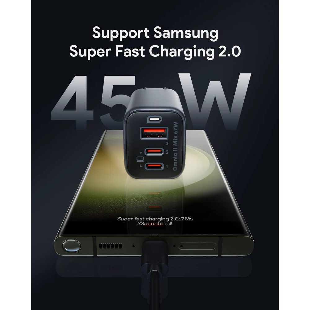 Tính năng Củ Sạc Nhanh AUKEY PA-B6U 67W (2*Type-C + 1*USB-A Port, UFCS certified, GaN Technology)