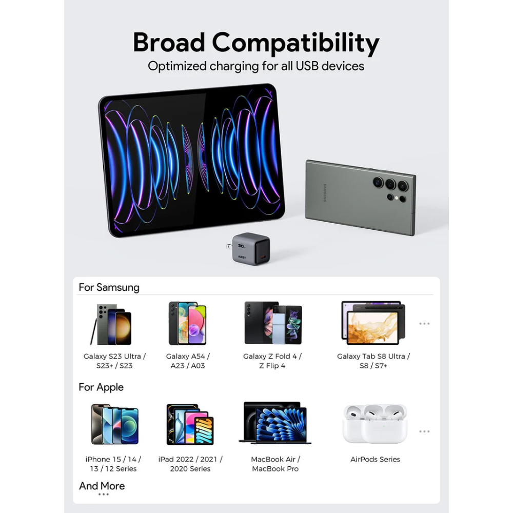 Tính năng Củ Sạc Nhanh AUKEY PA-C1 Comet 30W (GaN Technology, 1*Type-C Port)