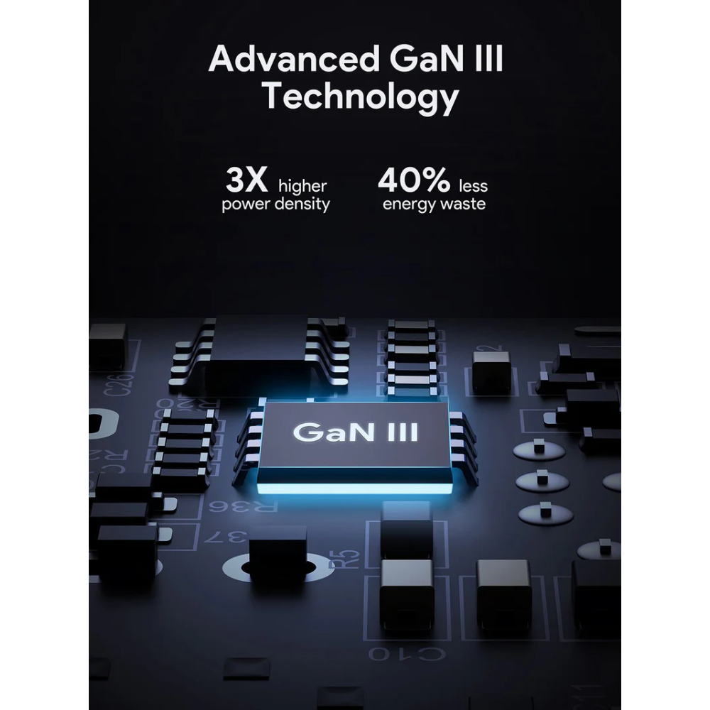 Sức mạnh của Aukey PA-C1 đến từ công nghệ Gallium Nitride (GaN) thế hệ thứ ba. Công nghệ vật liệu bán dẫn tiên tiến này cho phép củ sạc đạt được hiệu suất chuyển đổi năng lượng cao hơn, tỏa nhiệt ít hơn và quan trọng nhất là có kích thước nhỏ gọn hơn đến 58% so với các bộ sạc 30W thông thường. Bạn có thể dễ dàng bỏ PA-C1 vào túi áo, túi quần hay bất kỳ đâu mà không hề cảm thấy vướng víu.