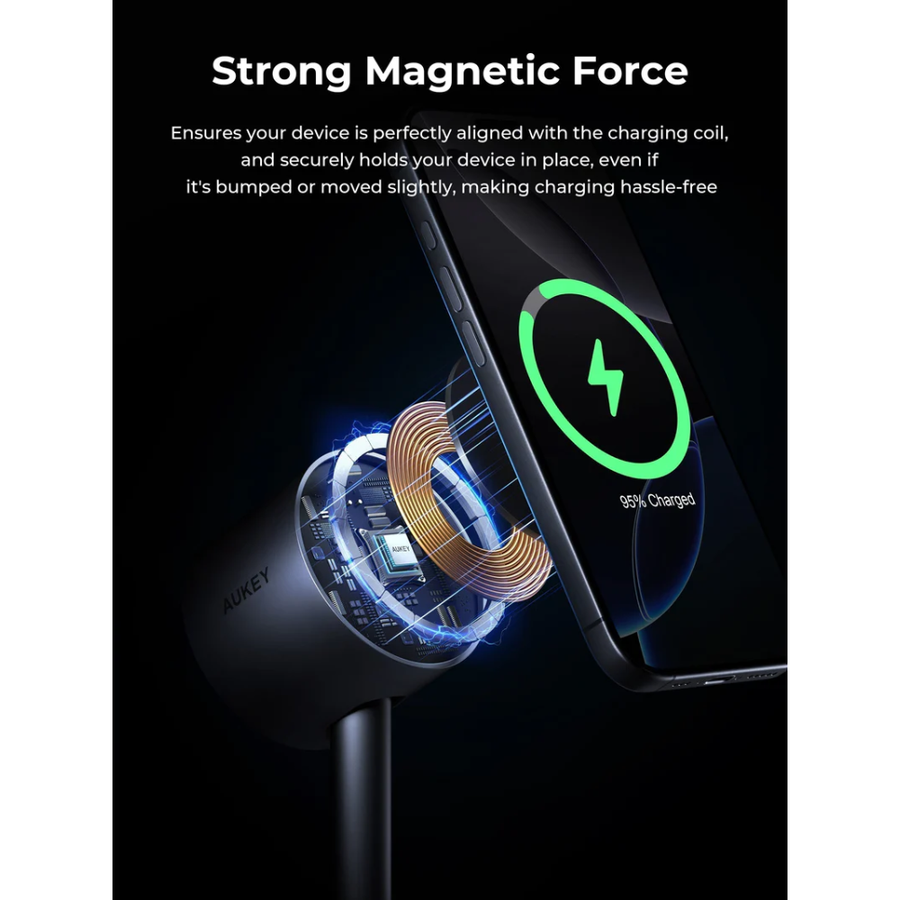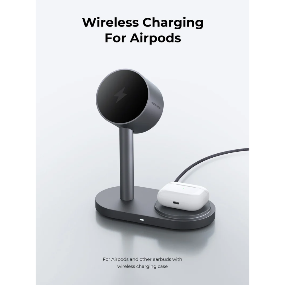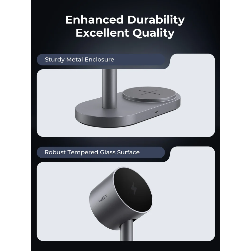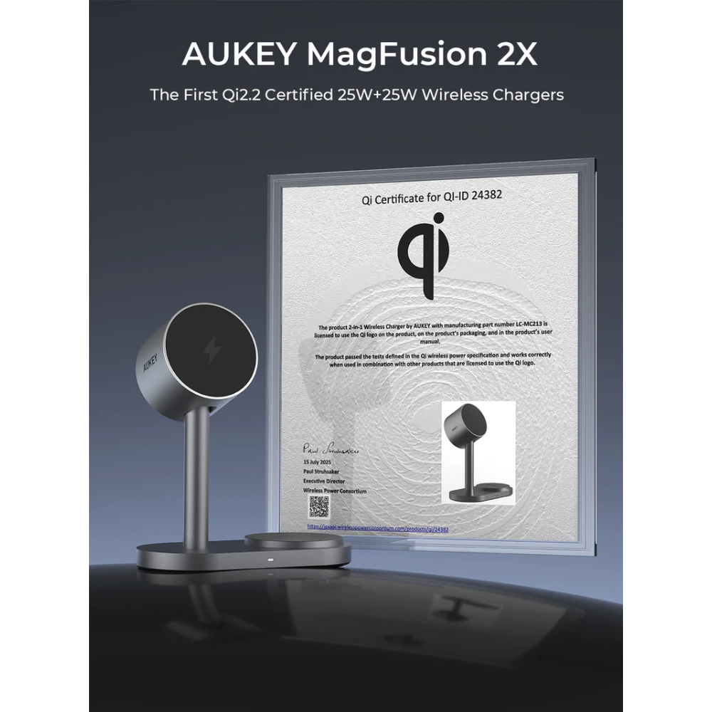 Hình Ảnh Đế Sạc Đứng Không Dây 2-in-1 AUKEY Qi2.2 MagFusion 2X LC-MC213 25W (Wireless Charging Qi2.2 25W, Strong Magnetic Force, 360° Rotation)