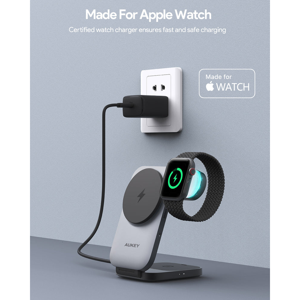Hình Ảnh Đế Sạc Không Dây Từ Tính 3-in-1 AUKEY LC-MC312 15W (Qi2, Strong magnetic attraction)