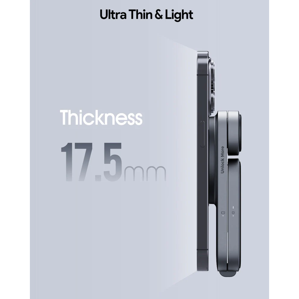 Sản phẩm được hoàn thiện từ các vật liệu cao cấp bao gồm ABS + Hợp kim kẽm (Zinc Alloy) + Silicone, mang lại độ bền bỉ, cảm giác chắc chắn và khả năng tản nhiệt tốt. Cổng sạc đầu vào là USB-C hiện đại. Đế sạc cũng được tích hợp công nghệ sạc an toàn, bảo vệ thiết bị khỏi quá dòng, quá nhiệt.
