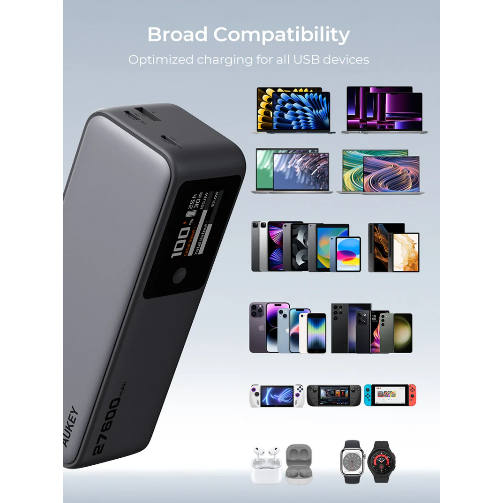 Hình Ảnh Pin Dự Phòng AUKEY PB-Y63 Spark Mega 27600mAh 140W (2*Type-C + 1*USB-A Port, Digital Display)