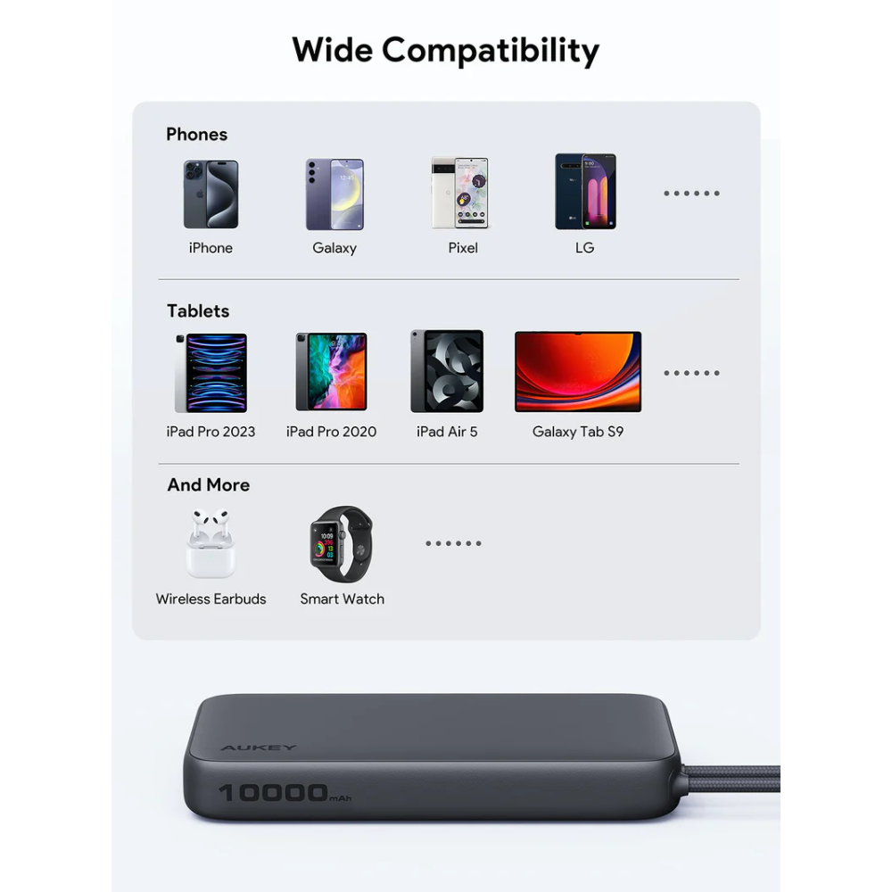 Tính năng Pin Dự Phòng AUKEY Spark Sling PB-Y53 10000mAh 15W (with Built-in Type-C Cable, 1*Type-C + 1*USB-A port)